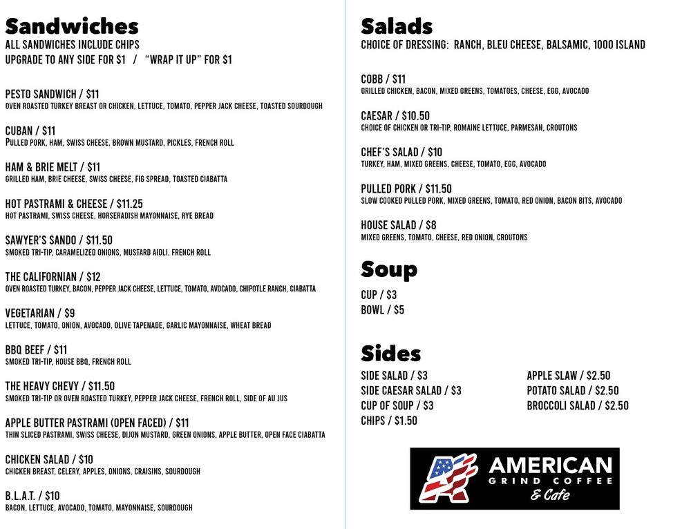 Customers rave about the friendly service and eco-friendly practices, including reusable plates. Experience a blend of great food and conscientious dining at American Grind!